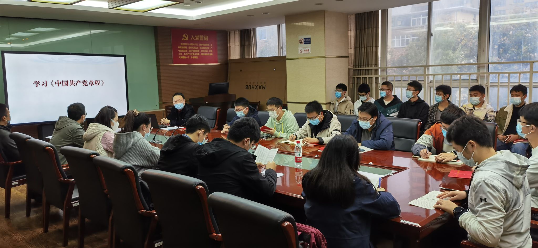 组织员李国骏老师从历史的角度讲述了党章的发展历程和修改党章的必要性,并采取对比方式,对党的二十大通过的《中国共产党章程(修正案)》修改前后内容作了详细讲解,对深入学习党章和严格遵守党章提出了具体要求。