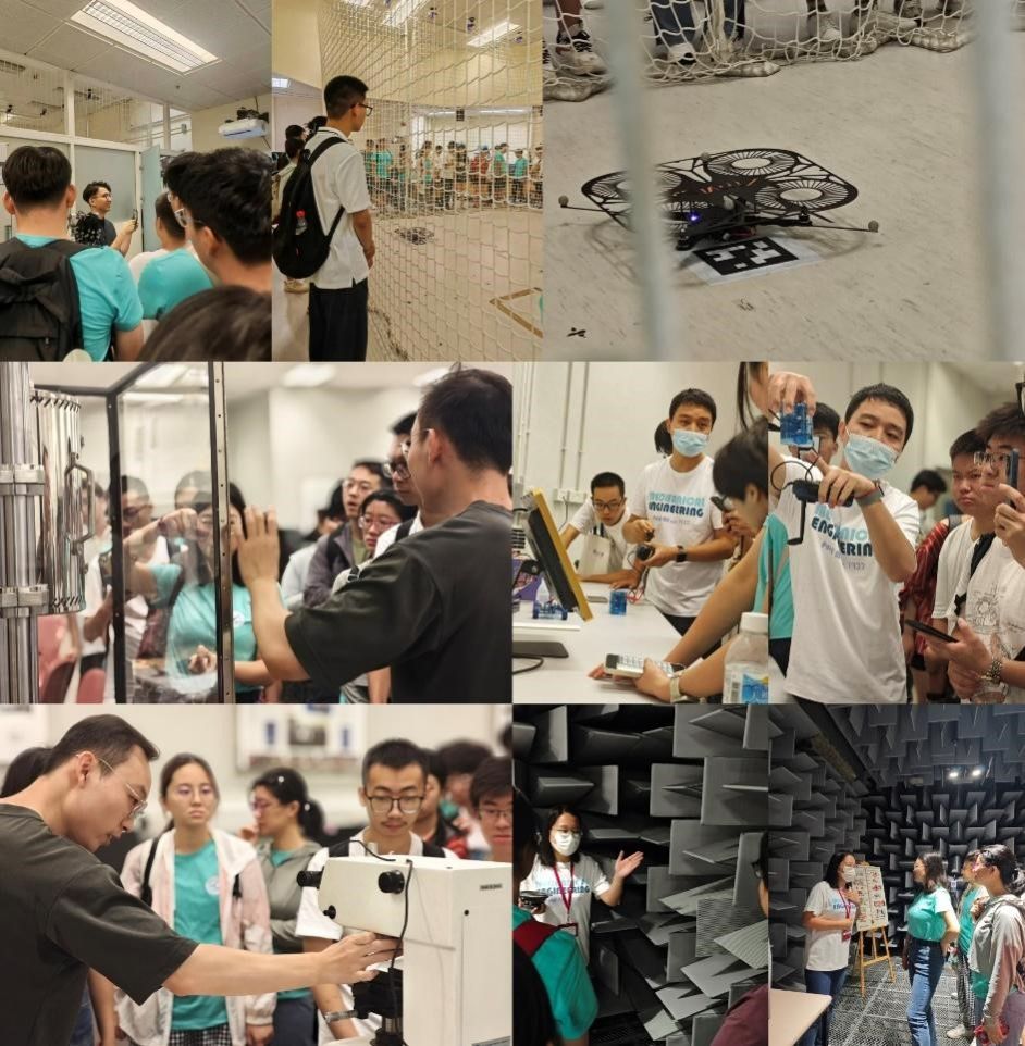 7日上午,在机械工程学系老师和同学的带领下同学们先后参观了香港理工大学的航空工程实验室、热科学实验室、材料力学实验室以及声学研究实验室。观看了实验室正在进行的多旋翼无人机定点降落与空中对接、基于A320驾驶舱飞行模拟器平台开展的人因工程研究、水分解制氢与氢能源技术等研究成果。作为香港理工大学创校时的创始系之一,机械工程学系致力于成为全球领先的机械工程系,尤其针对高级材料、力学、航空航天工程、清洁能源、能源存储、机器人技术、控制、声学、振动、热流体和燃烧等领域。该系配备了先进的实验平台,如香港最大的全消音声学实验室,在该校学生细致的讲解和演示下,激发起学生们浓厚的兴趣。