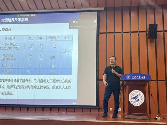 副院长孟中杰就2024级航空航天大类(航天)培养方案进行解读。他从培养方案概况、指导性教学计划、大类培养改革措施等三方面进行了细致分析。他提到,作为西工大航天学子,同学们要以高标准、严要求对待学业,为后续发展奠定坚实基础。