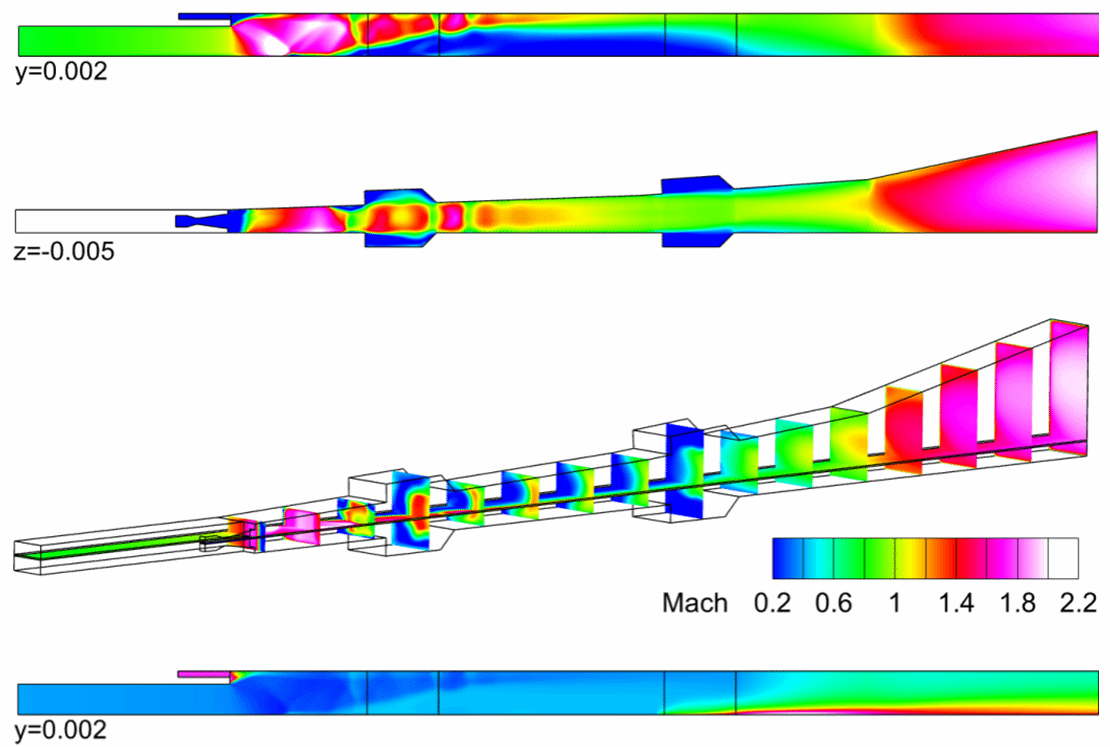 第一,研究内容。在访学期间,本人主要针对组合发动机引射-亚燃模态转换技术开展了数值模拟研究。主要研究内容如下: