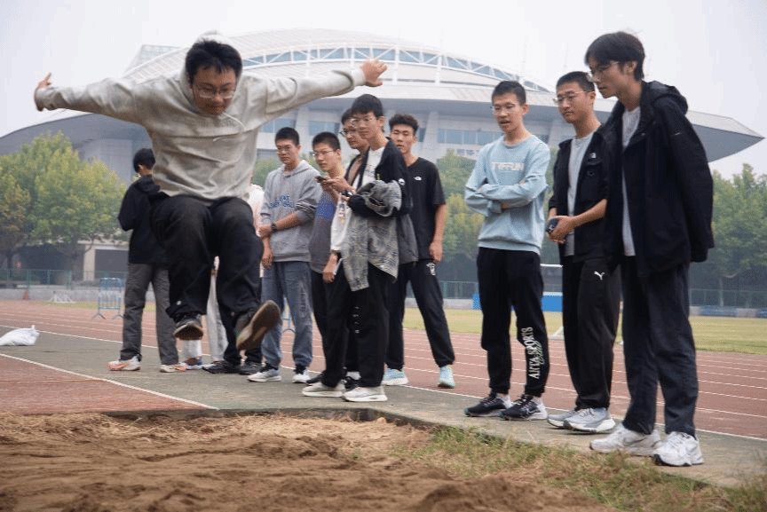 跳远:强力助跑,运动员们在起跳线前奋力起跳,稳稳落地,为自己满意的成绩呐喊。