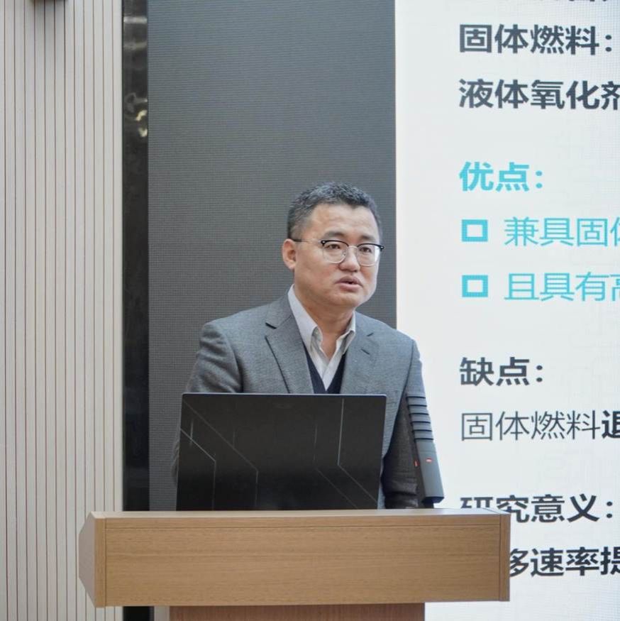开幕式后,173技术首席、兵器四院科技带头人、西安近代化学研究所付小龙研究员作题为《固液混合推进燃料3D打印制备与燃料特性研究》的主题报告。
