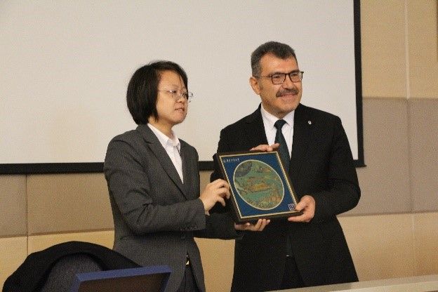 在闭幕式上,伊斯坦布尔理工大学校长Hasan Mandal发表致辞,对本次冬令营的成功举办表示祝贺,并高度评价了两校师生在交流中展现出的学术热情与开放态度,表示后续会签署备忘录,以推进两校进一步的学生交流、学生培养和科研合作。随后,双方代表互赠了具有纪念意义的礼物,象征着两探花视频