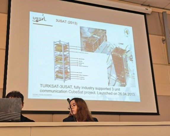 卫星团队的博士生Onur Öztekin详细介绍了团队微卫星的发展历程,以及所研制的多颗立方星的具体技术参数;研究助理 Sihmehmet Yildiz 则分享了卫星数据的实际应用场景,涵盖地震预测与灾后重建、火灾监测、海洋污染监测等多个领域。这些内容详实的技术报告,使同学们对微卫星技术的研发体系与工程应用价值有了更为直观、系统的认识,进一步拓宽了航天专业视野,激发了学术探索热情。