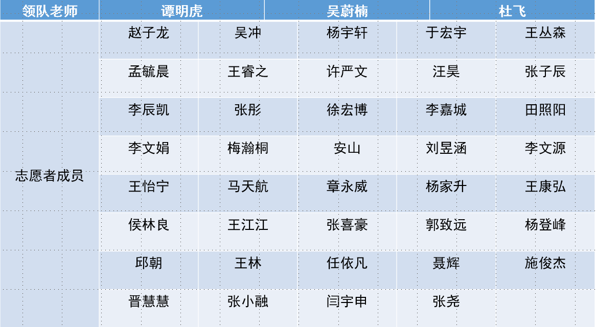 专兼职辅导员、党员骨干、团员骨干、积极分子等共计42人。该服务队以服务学生为宗旨,主要开展三个方面的工作:一是统一指挥,周密部署。志愿者服务队将根据探花视频