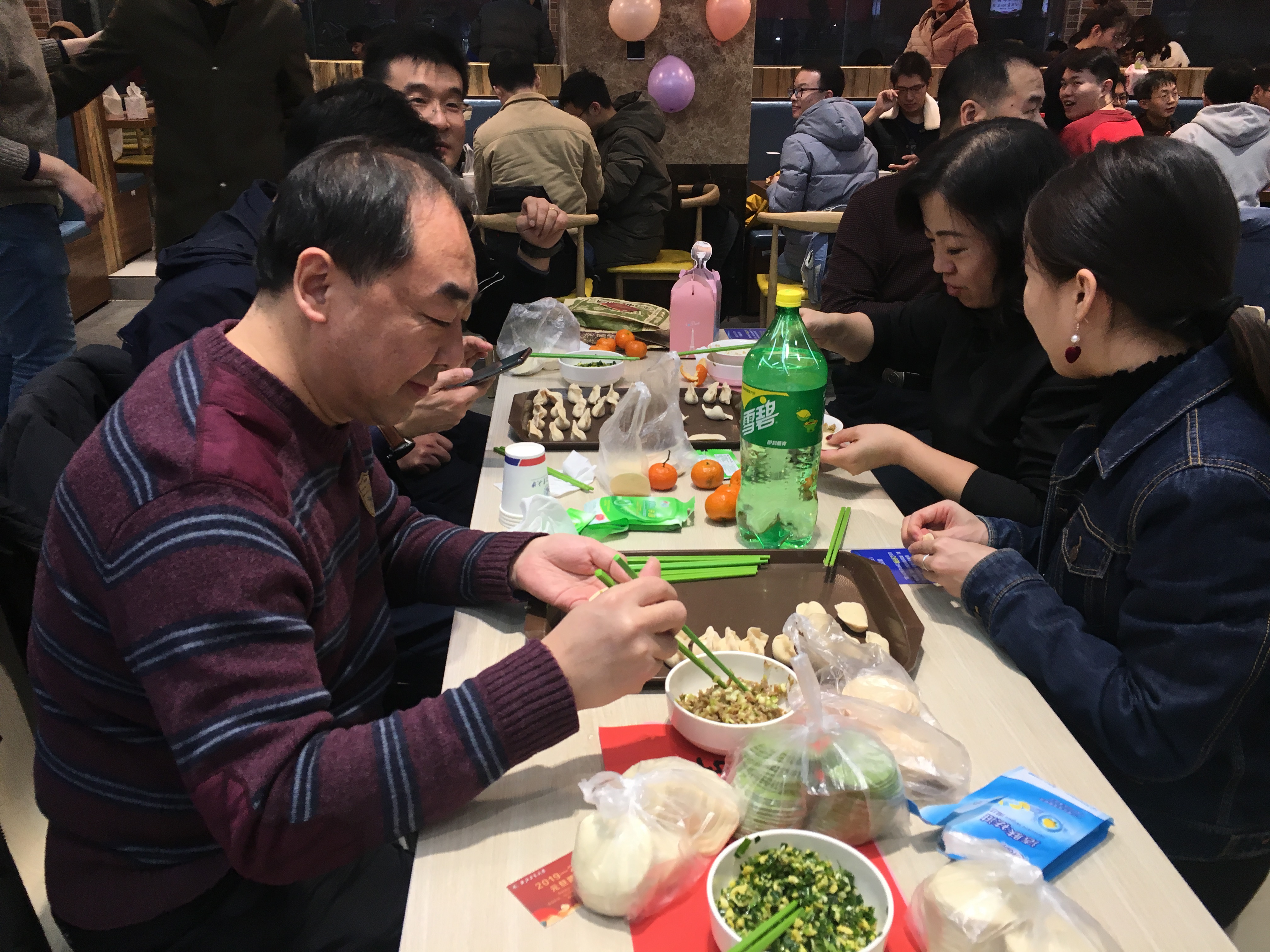 师生领取了饺子皮和饺子馅后,围坐在一起,开始了自己的包饺子之旅。探花视频