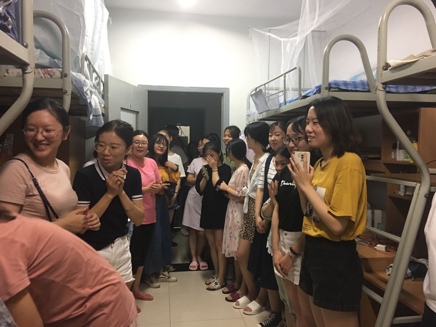 的人文关怀,也希望通过一次小范围的生日会更加拉近同学们之间的关系,慰问小组准备了生日蛋糕为当天过生日的杨露同学补一次生日。两位老师召集了2019级所有新入学的女生一起,同唱生日快乐歌,为杨露同学庆祝生日,也为所有新同学送祝福。杨露同学激动地表示探花视频