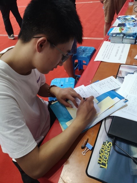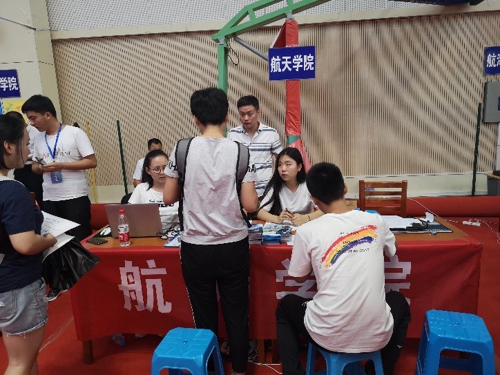 )以及星D-359(军训服领取处)。在萌新们报到的内场,学生会的学长学姐们认真核对小天们的信息、耐心解答学弟学妹们的问题,让新生们感受到了来自新家庭的温暖和热情。值得一提的是,在此次18级迎新中,学校采用了“AR”电子导引技术,新生可通过手机APP对学校进行三维实景体验。