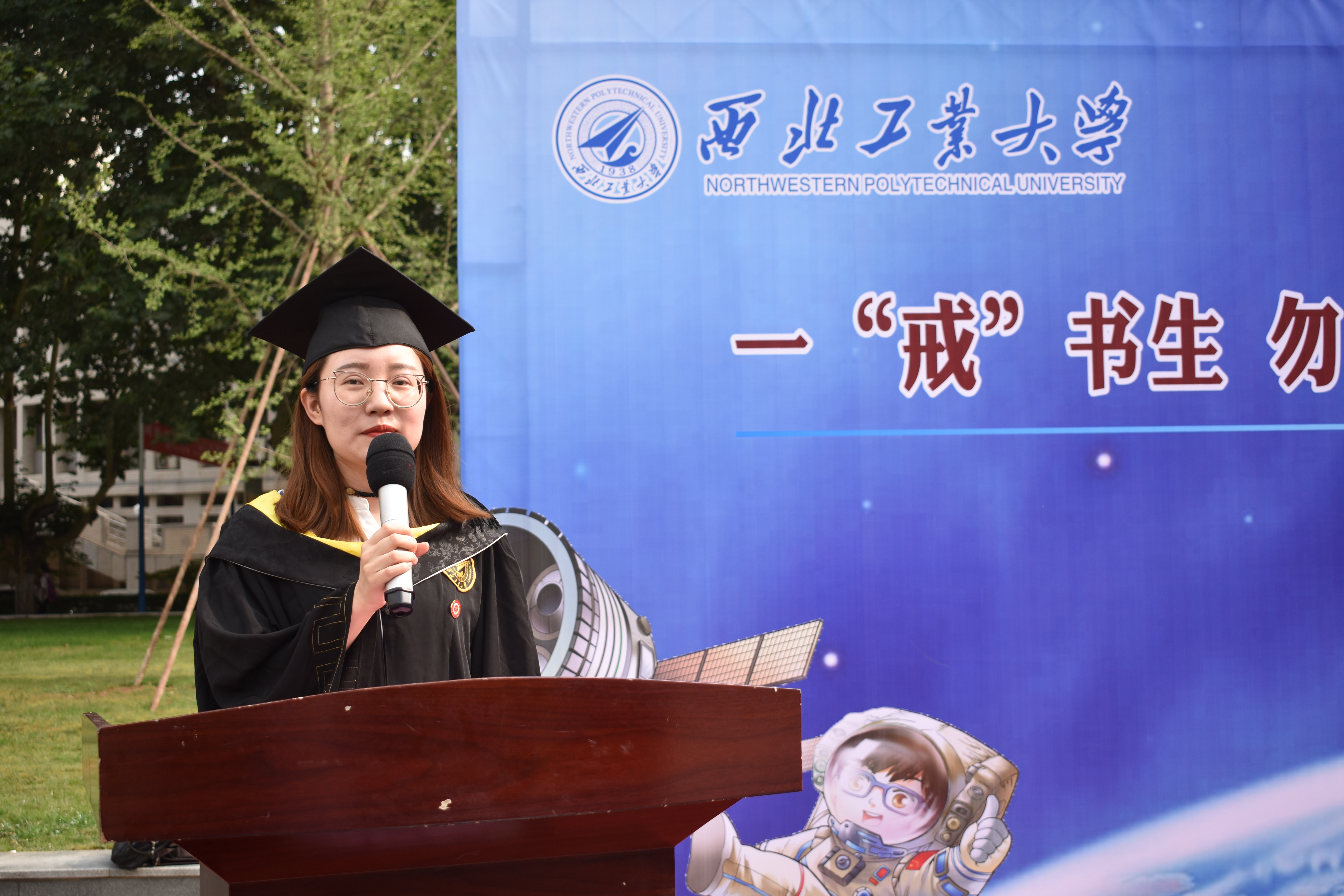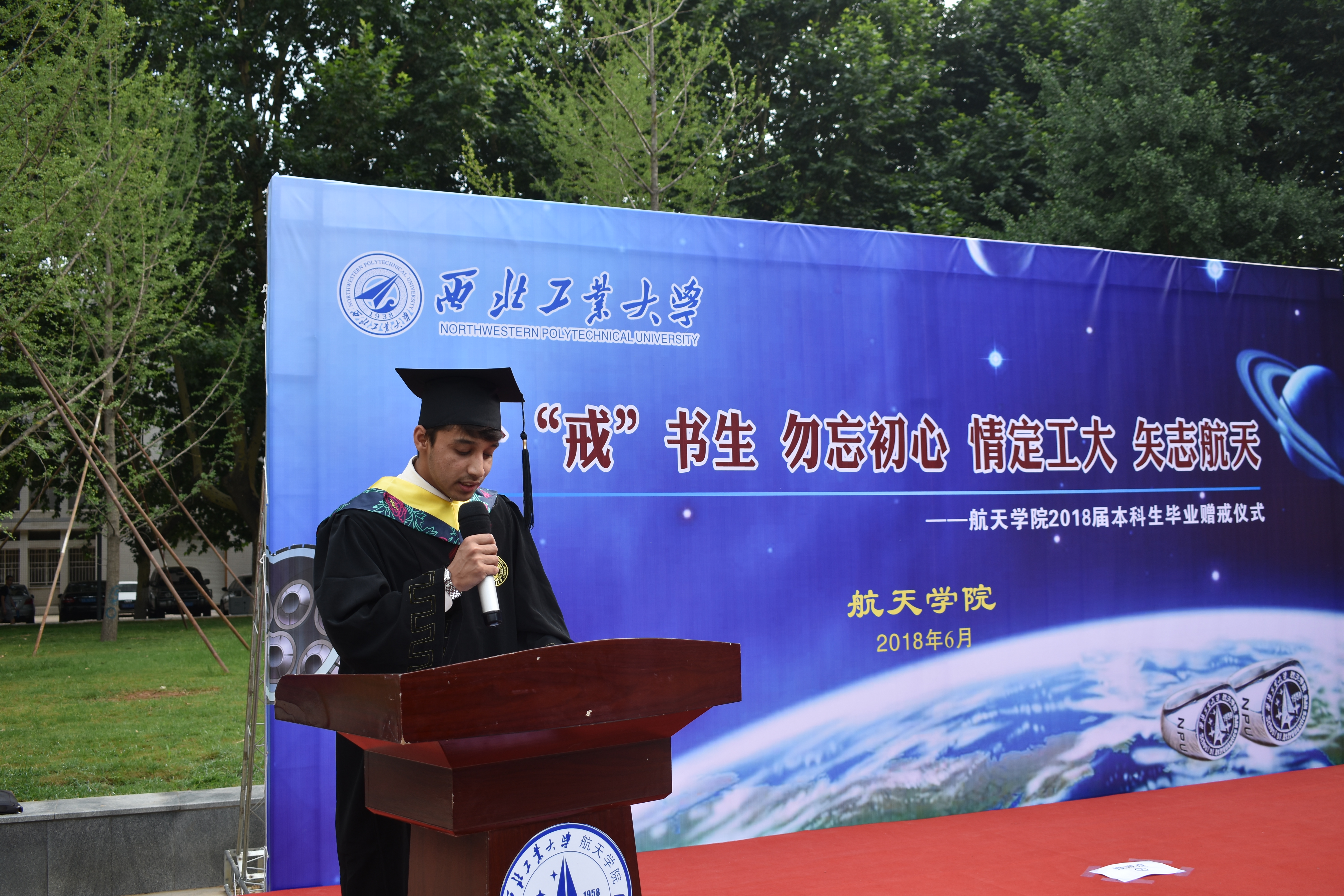 教给他们的点点滴滴,“一‘戒’书生、勿忘初心,情定工大、矢志航天”必将铭记于每一位同学的心中,他们的青春年华必在为国家、为人民的奉献中换发出绚丽光彩。