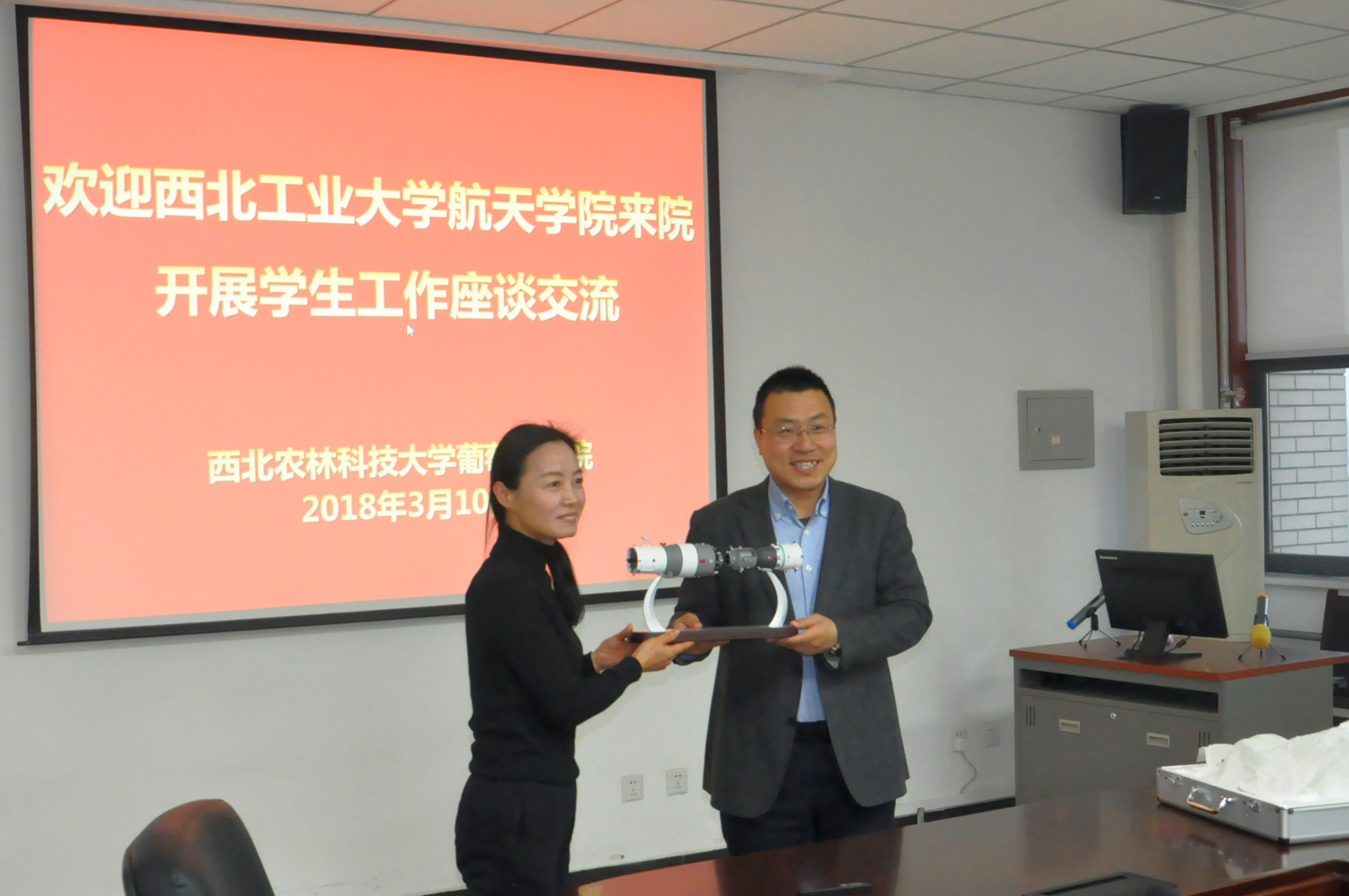 赠送了神舟十号与天宫一号的交会对接模型,寓意两个探花视频