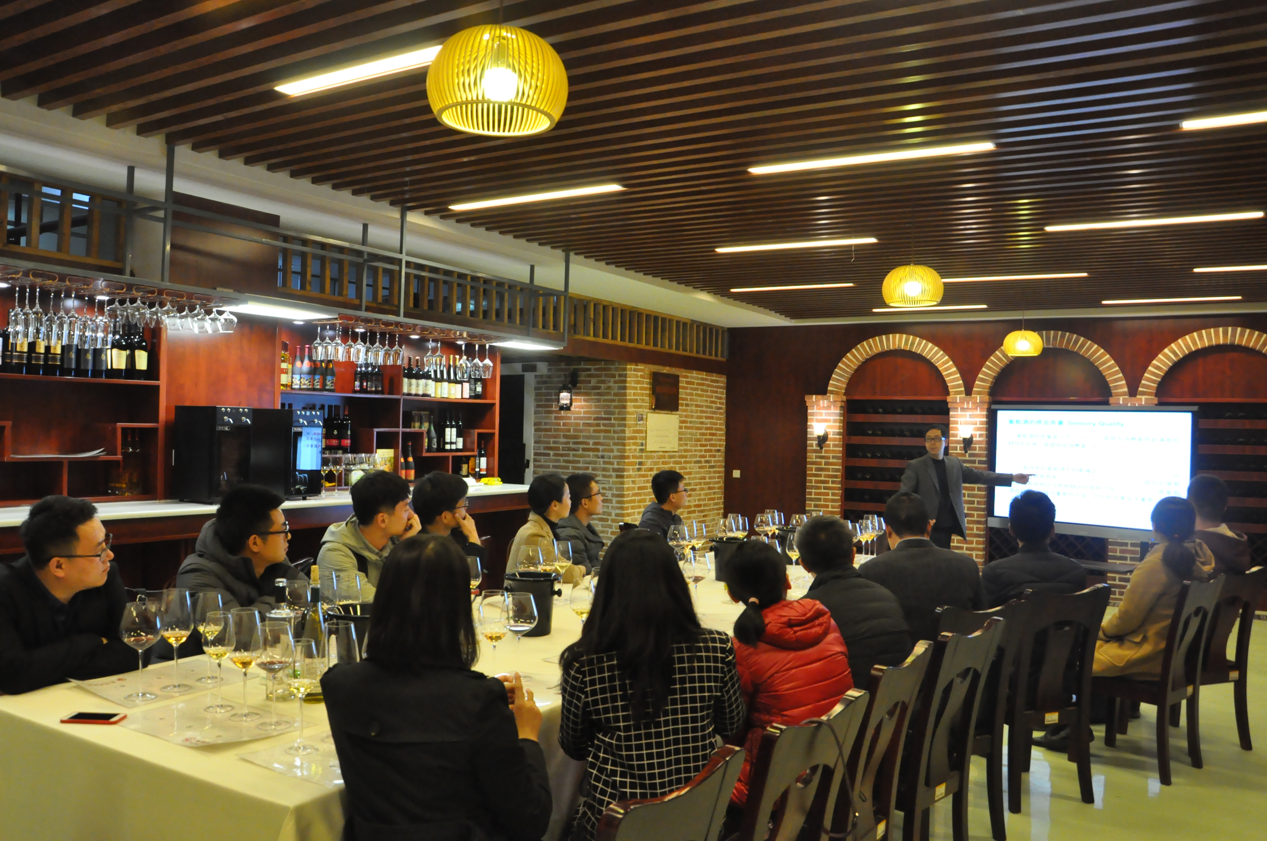 的地下酒窖中,陶永胜教授以三款不同的葡萄酒为例,为大家讲解了葡萄酒的品鉴知识。参访团成员王宇感叹道,“没想到葡萄酒文化如此迷人,里面还有这么多的知识,学习到了很多!”
