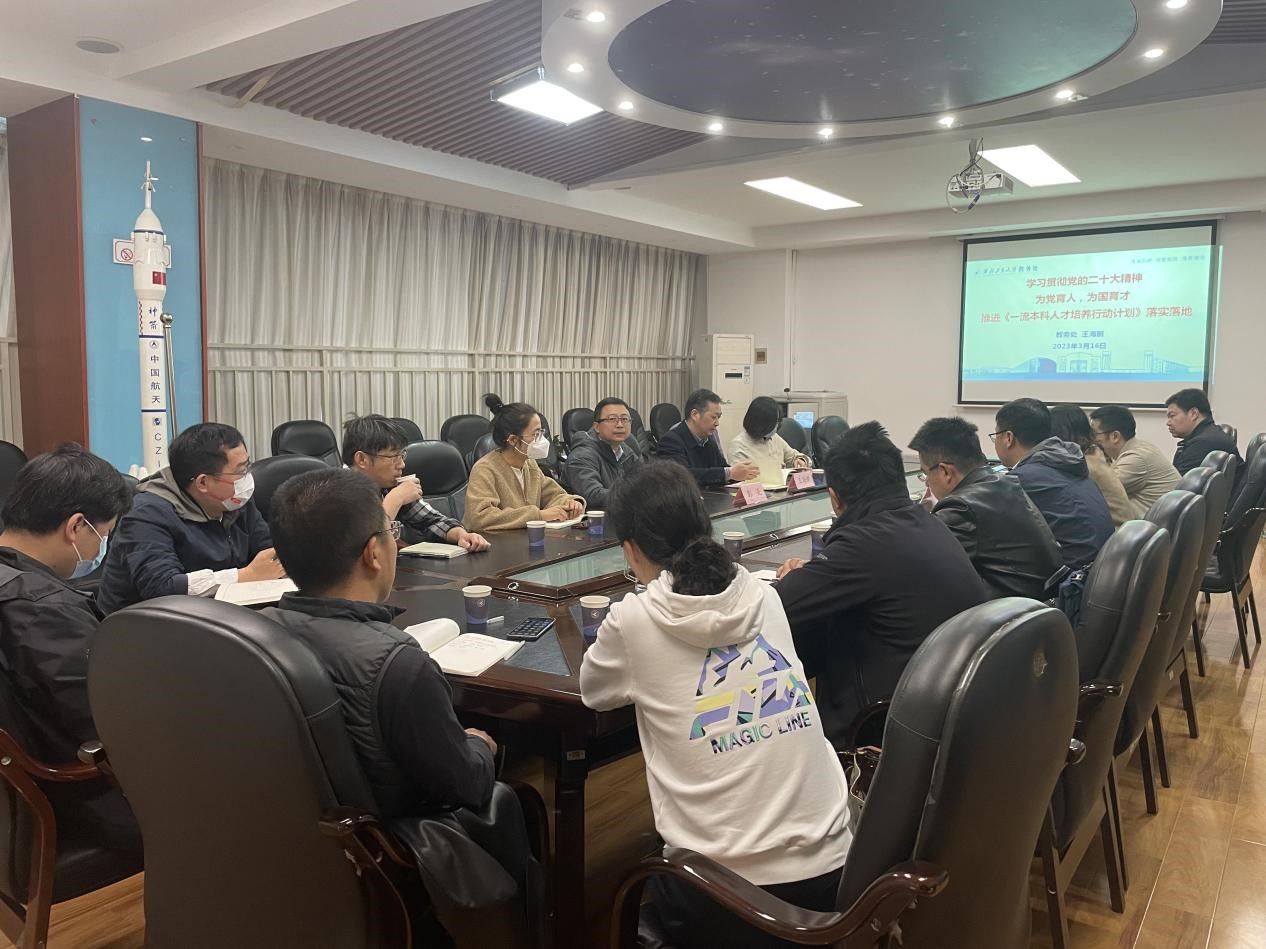 首先,王海鹏带领与会人员进一步学习了党的二十大精神的丰富内涵,并围绕招生宣传、思政工作、课程建设、教材建设、督导评价、教学队伍建设、教学质量保障等方面,对我院近几年本科教学情况进行了全面分析,就探花视频