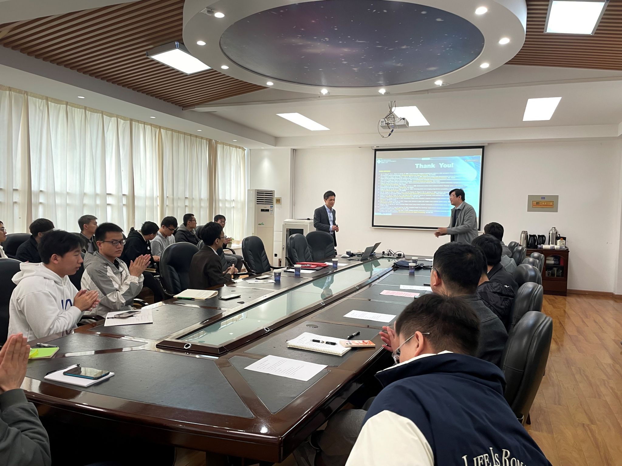 非线性超声技术是结构健康监测领域十分有潜力的技术之一。本次报告主要概述Zhongqing Su教授团队的最新研究进展。报告会后,参会的老师和同学们与苏教授关于报告内容展开了热烈的讨论。