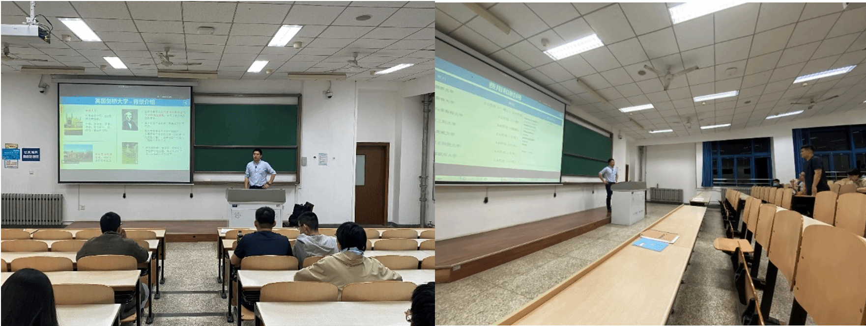 随后,李阳介绍了今年暑期交流项目中涉及的英国剑桥大学、英国莱斯特大学、日本静冈理工科大学、爱尔兰国立高威大学、沙特阿卜杜拉国王科技大学、巴西圣卡塔琳娜联邦大学等6所学校相关信息,包括学校的地理位置、专业课程、人文风景、活动安排及费用等信息,让同学们对暑期交流的项目有了初步的了解。接着,他详尽地介绍了各学校的特色课程和实践项目,如剑桥大学的流体力学、空气动力学,莱斯特大学的天体物理与空间技术,沙特阿卜杜拉国王科技大学的工程、科技和创新项目等。