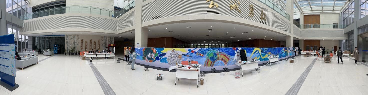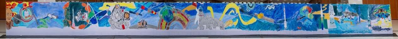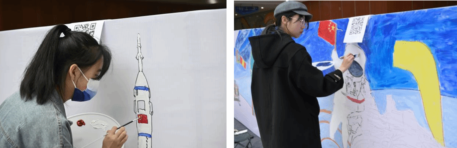 航天征程波澜壮阔,同学们一起用画笔绘制航天长卷。长卷在画笔下绘出时,好似中国航天的过往正一幕幕地重新展现,中国航天的未来正在由同学们书写。