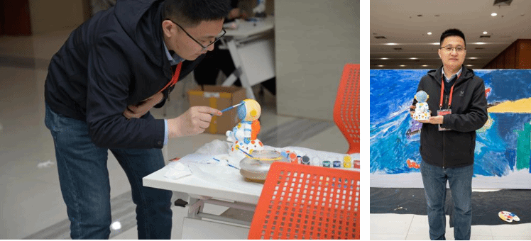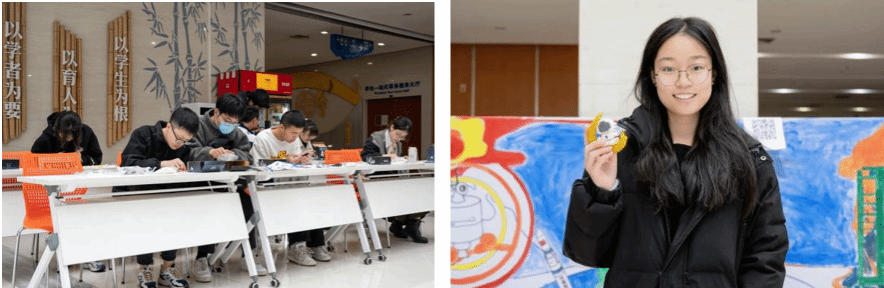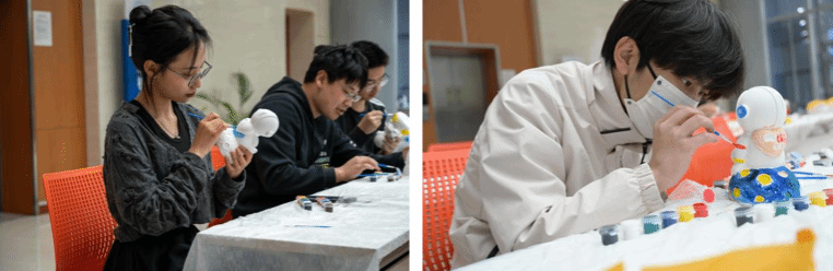 尽管细雨绵绵,但同学们热情不减。航天模型彩绘现场,大家挥动画笔,将颜料绽放于模型表面,尽情展示自己心中那片独特的太空。