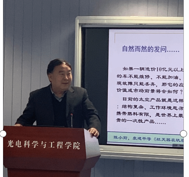 随后,袁建平教授以“航天器在轨服务-构建空间4S店”为主题,为苏州大学光电科学与工程探花视频