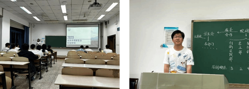 图|学生会主席团成员刘洋主持学生会换届答辩 图|团委副书记(学生兼职)张弛主持团委换届答辩