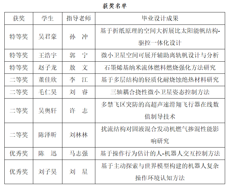 获得特等奖3项、二等奖4项,充分展现了西北工业大学航天专业的特色和风采。