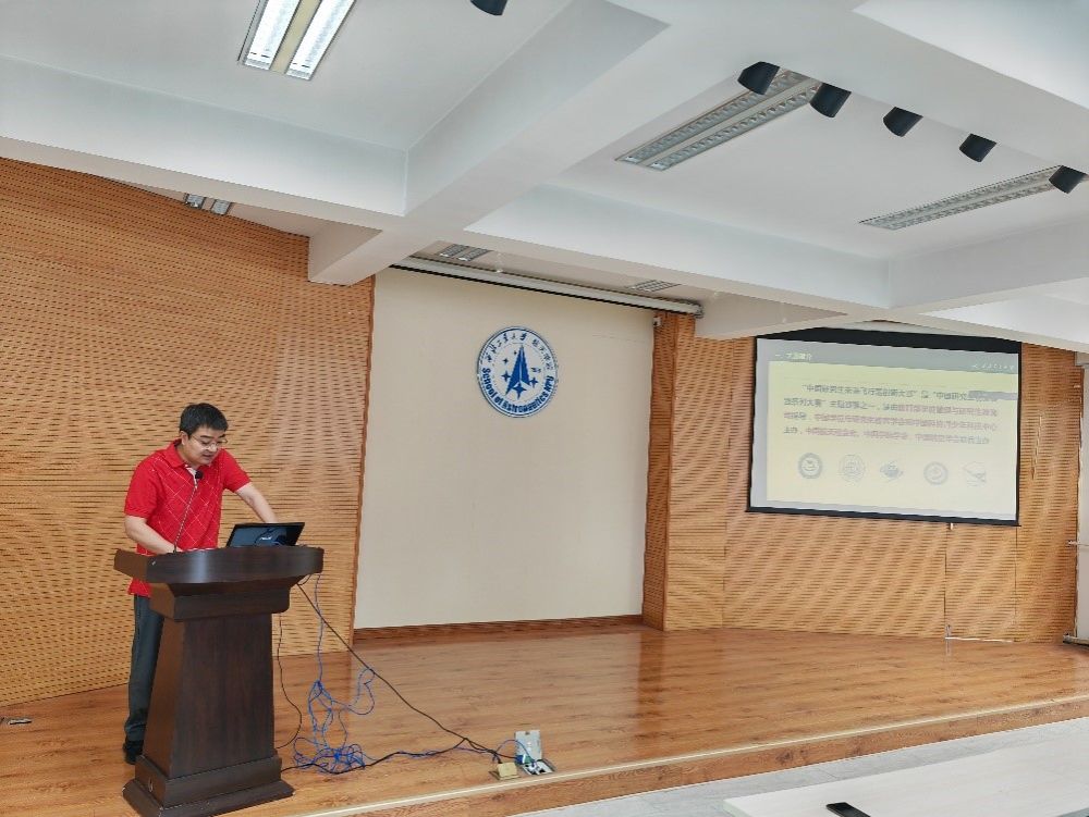 首先,宁昕副院长对大赛进行了全面介绍,包括:历届大赛概况、大赛亮点及特色、本届大赛筹备情况等。他特别强调该赛事是国内外各研究生培养单位和行业广泛认可的高层次赛事,逐步与国际高水平比赛接轨,该大赛为参赛选手们提供了一个跨学科、跨学校的高水平交流平台,让大家有机会与学术大师和技术总师面对面学习,还将为他们开启航空航天领域的就业机遇。