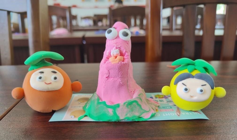 实践队队长洪志鹏带领高年级同学进行了黏土比赛,同学们对黏土精雕细琢,捏出来一个个栩栩如生的卡通人物形象,十分可爱。