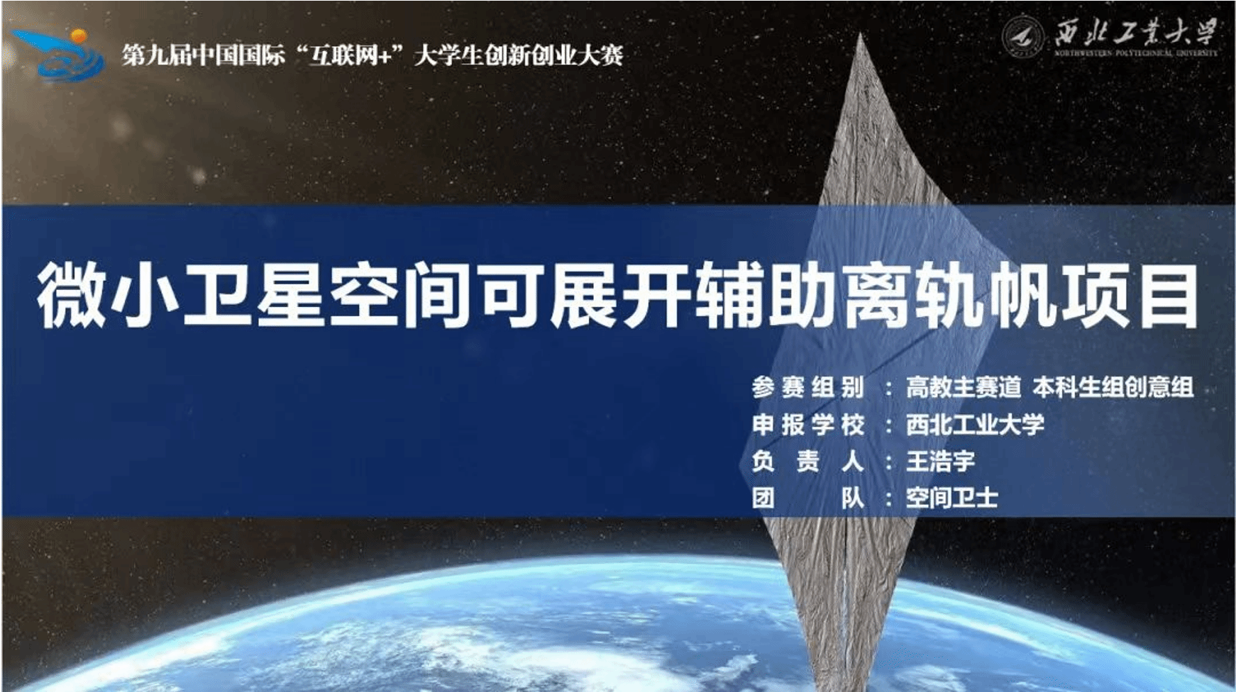 由郭宁副研究员与徐超教授指导,本科生王浩宇为负责人的“微小卫星空间可展开辅助离轨帆项目”以小组第一的位次荣获省级金奖。该项目主要针对微小卫星末期离轨问题,立足团队多年来的研究成果,研发了“空间卫士”系列离轨帆产品,利用可展开帆膜增大卫星的面质比,增大卫星在稀薄大气中所受到的阻力,促使任务结束的微小卫星快速离轨。该项目积极响应国家政策,大大降低了微小卫星离轨成本,可以满足微小卫星自主化轻量化离轨要求。截至目前,该项目已公开直接相关的国家发明专利四篇,发表论文6篇,项目中的部分型号已完成在轨工作。
