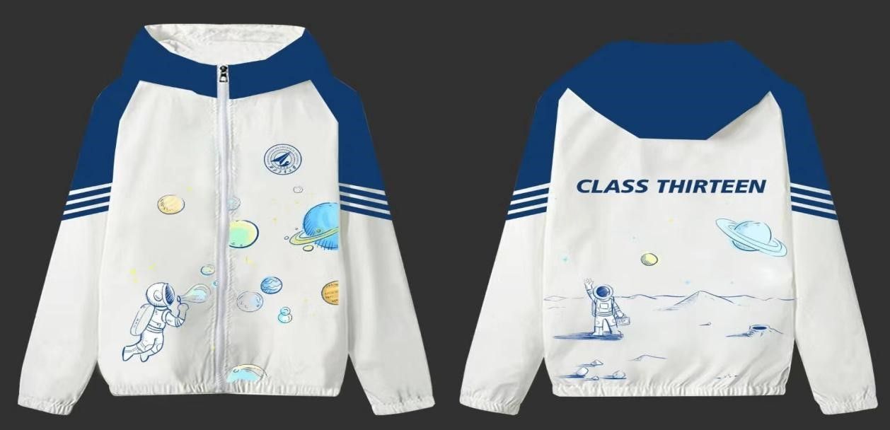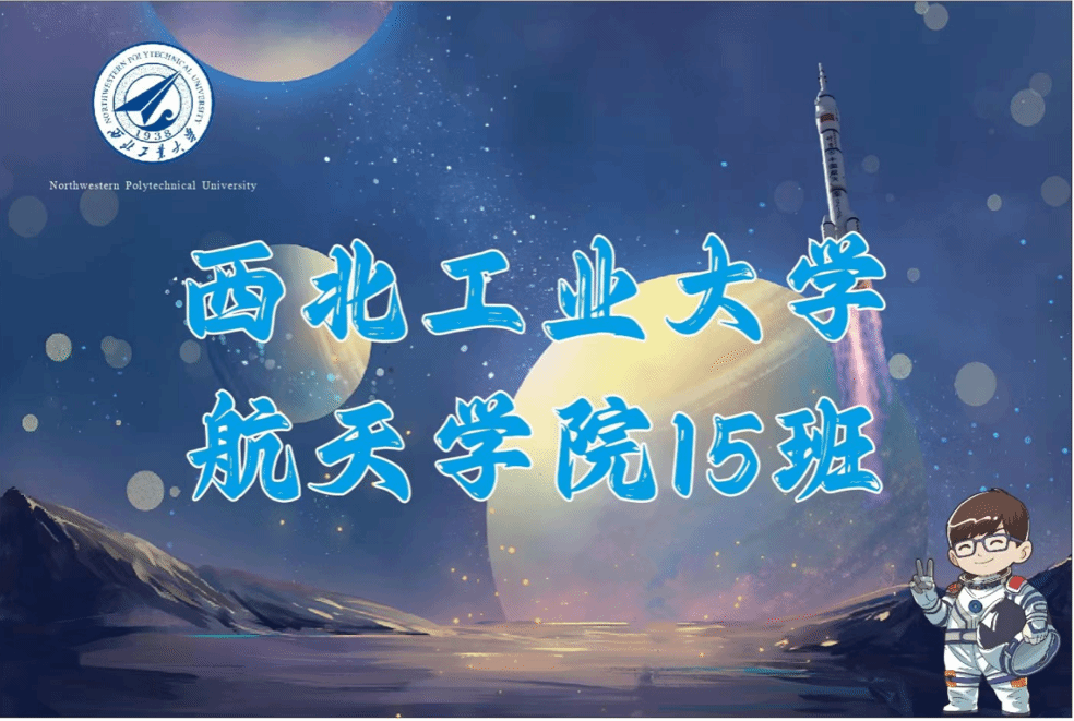 15班“以浩瀚的星空作为背景,既展现出航天事业的舞台,也代表着我们探索未知,飞天报国的目标”: