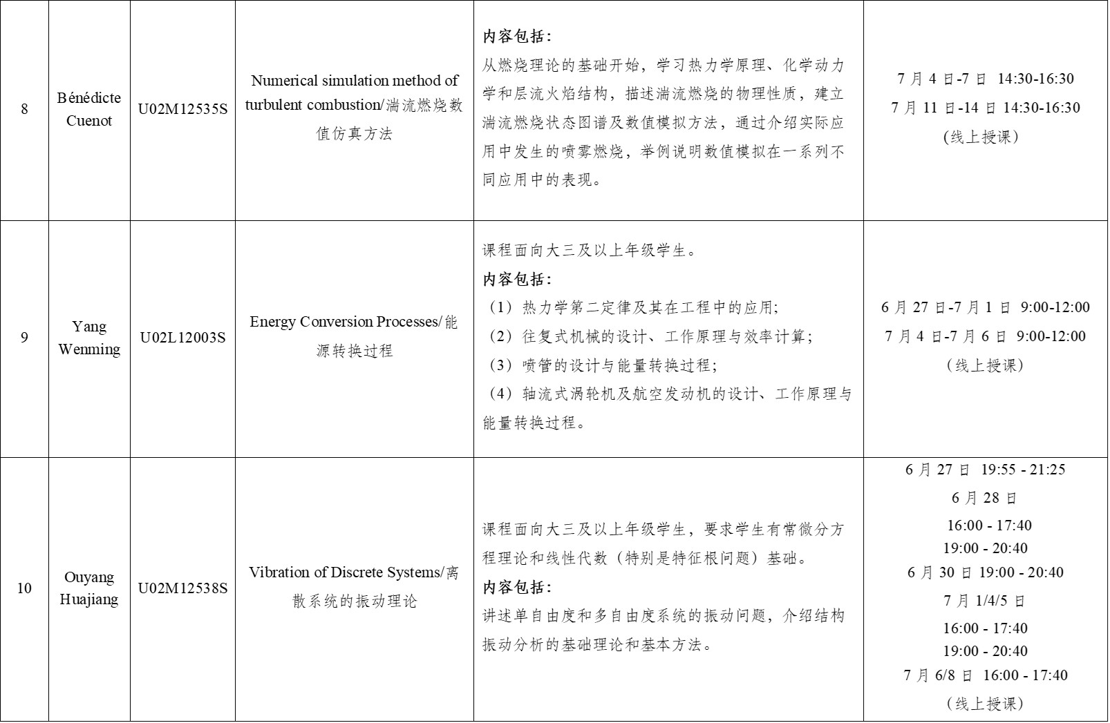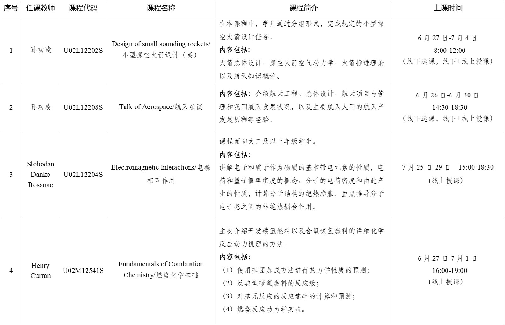 (5)课程代码最后一位为“S”的课程为在线暑期国际学堂课程。